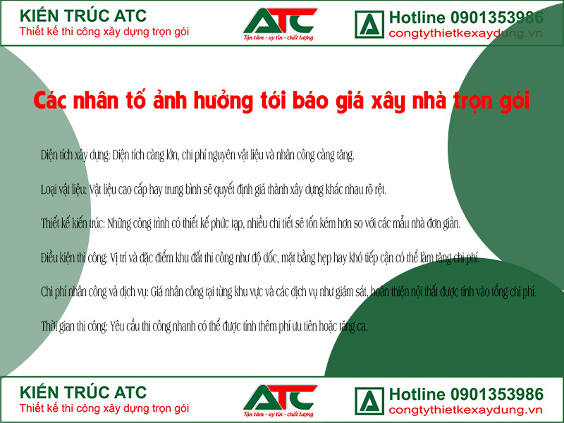 Công ty Kiến Trúc Xây Dựng ATC cam kết cung cấp báo giá xây nhà trọn gói phường Gò Vấp TP HCM rõ ràng, phù hợp mọi ngân sách. Khách hàng hãy liên hệ ngay để được tư vấn và báo giá chi tiết, từ đó giúp xây dựng ngôi nhà mơ ước một cách tiết kiệm và hiệu quả.