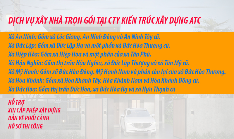 Công ty Kiến Trúc Xây Dựng ATC nhận thi công xây nhà trọn gói tại xã Đức Hòa tỉnh Tây Ninh và các khu vực lân cận như: …